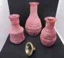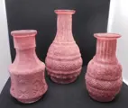 Leuke vaas in 3 verschillende fles vormen met slanke hals mat rood glas.