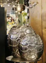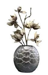De vaas is vervaardigd uit dik metaal en voorzien van een stoere nikkelcoating, waardoor deze niet alleen robuust oogt maar ook eenvoudig schoon te maken is met een vochtige doek.