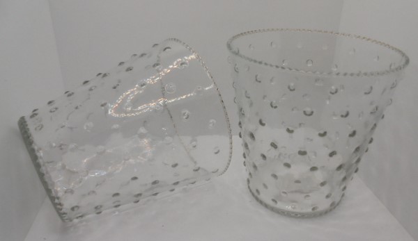 Afwerking bovenop geribbelde rand, aan de voet ook rondom bolletjes.