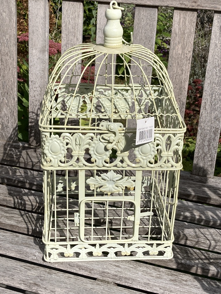 Let op: door de ruime afstand tussen de spijltjes is deze kooi niet geschikt om als echte vogelkooi te gebruiken.