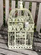VOGELKOOI VIERKANT METAAL DECORATIEVE KOOI ANTIEK 42 cm WIT