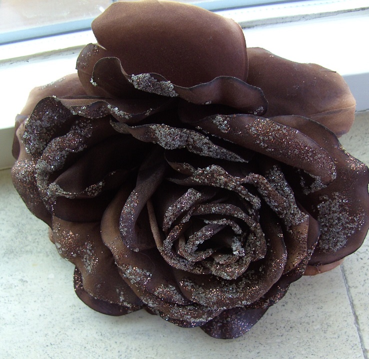 ZIJDEN ROOS DKR BRUIN dia 20 cm Nieuw