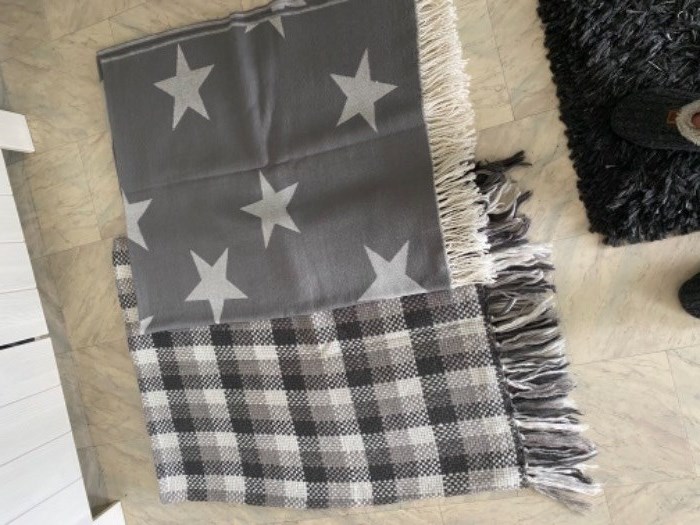 2 grijze plaids + kussen