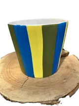 Prachtige potje met de hand geschilderd in opvallende kleuren, geel, groen en blauw.