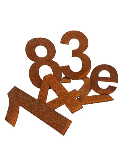 Het huisnummer wordt ongeroest in de metaalkleur aangeleverd. De bruin/oranje roest laag vormt zich binnen enkele weken/maanden. Hier is geen behandeling voor nodig. De huisnummers kunnen worden geleverd in 20cm en 30cm hoog en ze zijn 3mm dik. Tevens zijn er ook toevoegingen van 10cm in de webshop te bestellen.