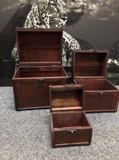 Mooie set kistjes om b.v. documenten in op te bergen, de set bestaat uit 3 kistjes die in elkander passen, zie de foto's die spreken voor zich.