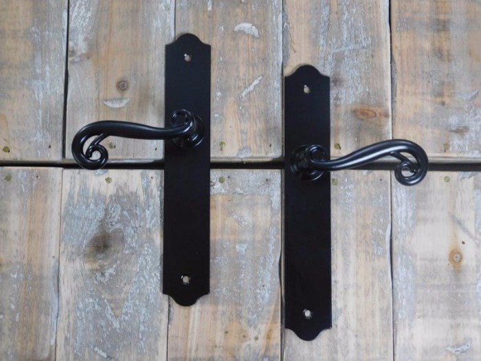 Een prachtige set deurbeslag bestaande uit: 2 deurklinken, 2 deurplaten, 1 doorn + schroeven.