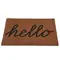 De deurmat heeft grote zwarte letters en een moderne uitstraling.