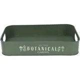 Middelgroot dienblad van groen metaal met een landelijk ontwerp en opdruk Botanical Garden.
