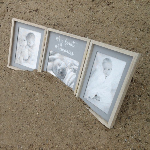 Drieluik fotolijst om de allerleukste babyfoto’s in te bewaren.