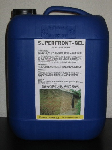 Verwijdert vervuilingen van poreuze, minerale, zuurbestendige gevelbouw materialen. SUPERFRONTGEL is gemakkelijk te verwerken en in meerdere lagen aan te brengen, heeft een lange “open”tijd, is daardoor effectief en economisch in het gebruik. U doet met 1 liter +/- 4 m2. Voor dat u SUPERFRONTGEL gebruikt, eerst de ondergrond licht bevochtigen met water, dan na 3 minuten het produkt aanbrengen op de steen. SUPERFRONTGEL tast geen kunststof, en schilderwerk aan. SUPERFRONTGEL is volledig veilig.