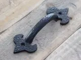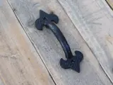 Levering: 1 x deur-poort greep, smeedijzer, zwart, incl 4 schroefjes.
