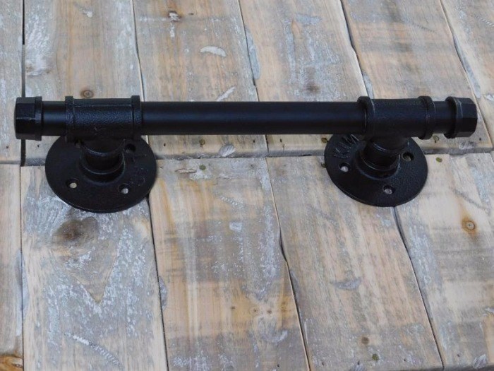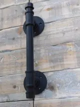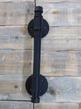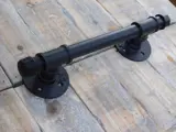 Prachtige forse industriële deurgreep, steigerbuis greep, ijzer zwart modern, zeer fraai.