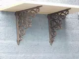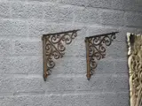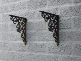 Set gietijzeren hoekdragers, voor b.v. boekenplanken.