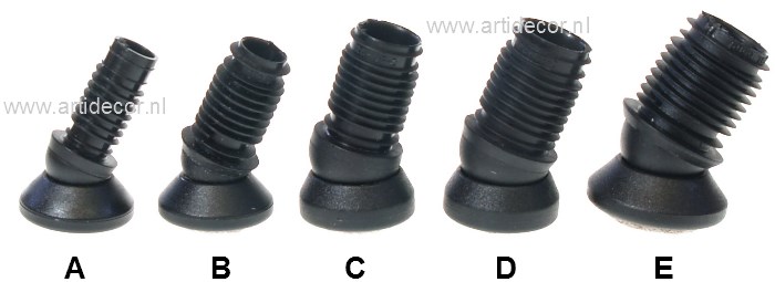 Deze holle buis glijders zijn in diverse maten verkrijgbaar. Max 22% basculeren. (max. bereikbare schuinte stoelpoot). De holle buis glijders zijn in 6 verschillende maten leverbaar. Deze maten kunt u zien bij de afbeeldingen waar duidelijk uitgelegd staat hoe de maat verhouding is.