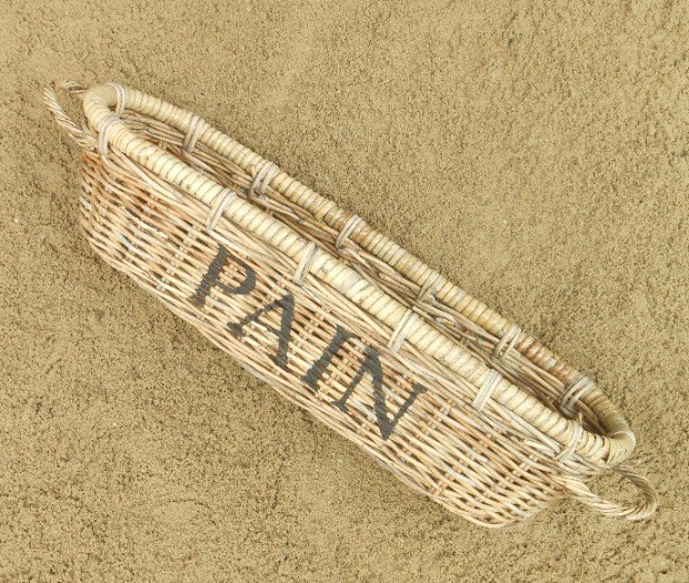 Deze stokbroodmand is tweezijdig bedrukt met BREAD en PAIN.
