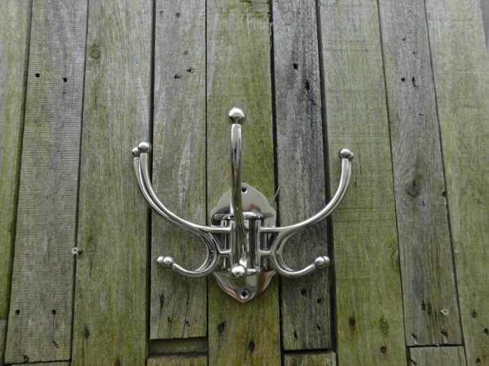 Leveringsomvang: kapstok met in totaal 10 haken, aluminium vernikkeld.