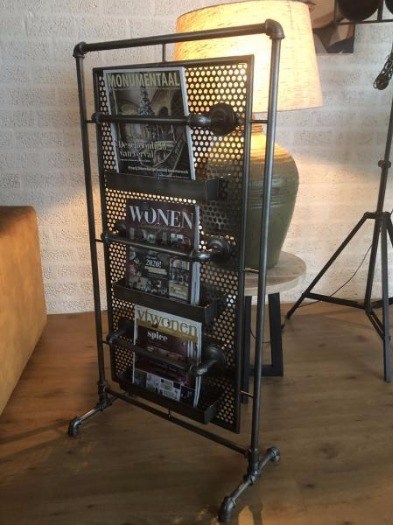 Tijdschriften-kranten-lectuur-standaard-kiosk-metaal-grijs.