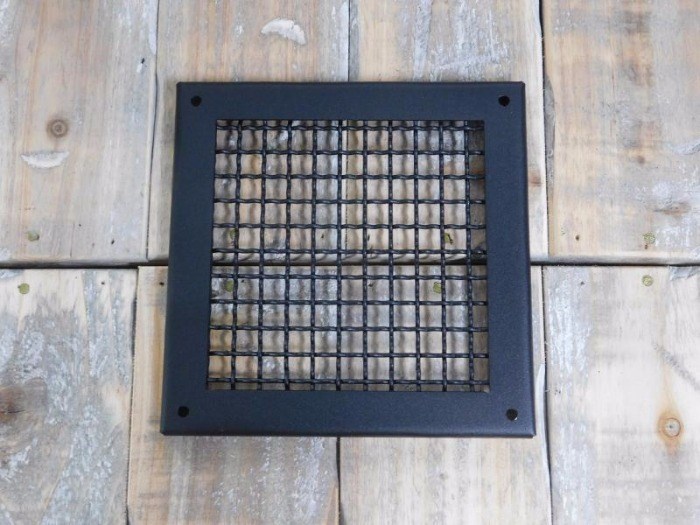 Dit is een vierkant luchtrooster met grof gaas. Perfect om de grotere insecten en andere dieren buiten uw huis te houden, maar wel doorluchting (voor bijvoorbeeld de openhaard) mogelijk te maken. Dit mat zwarte en elegante rooster is gemaakt van licht metaal en dus super licht en sterk.