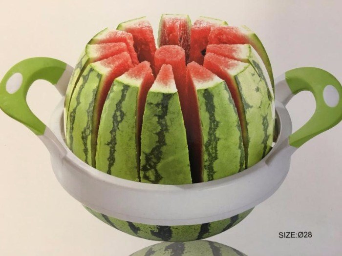 Levering: 1 x meloen-ananas- snijder, kunstog-metaal, zeer scherp.