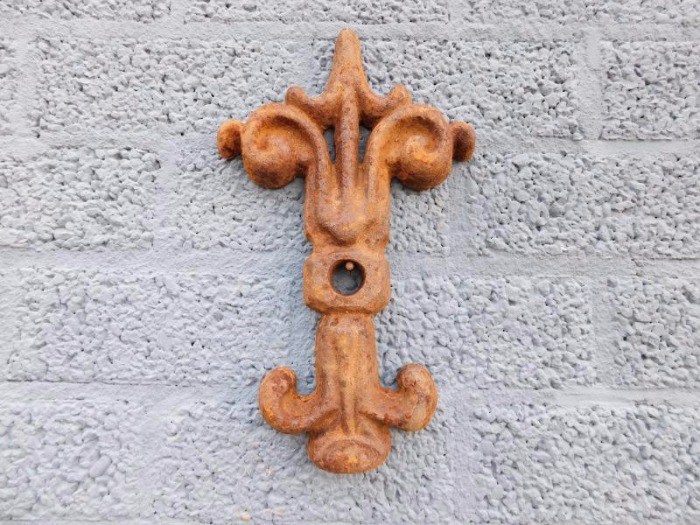 Zo`n anker zorgt voor de verbinding tussen 2 elementen: de eikenbalken die verbonden werden met de muur, met dit mooi ornament. Vroeger werd dit ornament met een houtdraaibout vastgezet in de balk en kwam het ornament aan de buitenkant op de muur.