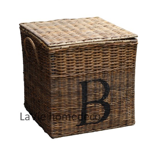 Aan de voorkant heeft deze opbergbox van riet een grote zwarte hoofdletter B.