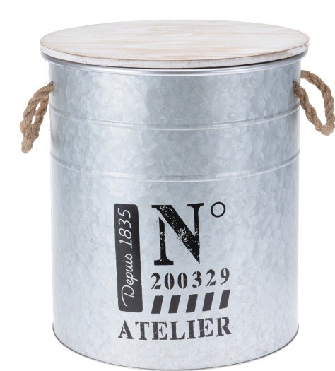 De opbergtrommel heeft de opdruk Atelier Depuis 1835 en een deksel van hout.