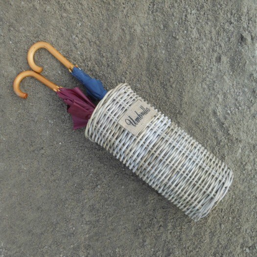 Compacte paraplumand van riet maar toch voldoende ruimte voor zeker 5 paraplu’s.