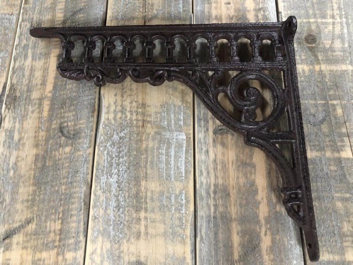Mooi antiek ogende gietijzeren plankdrager,hanger, stijlvol om in passende omgeveing te gebruiken.