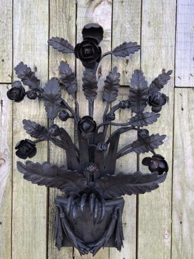Levering: 1 x smeedwerk bloemenmotief, roos, geheel smeedijzer, in kleur.
