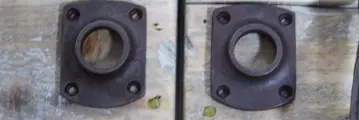 Hand gesmede rozet, smeedijzer bruin, rechthoekig met 4 bijpassende vastzet schroefjes.