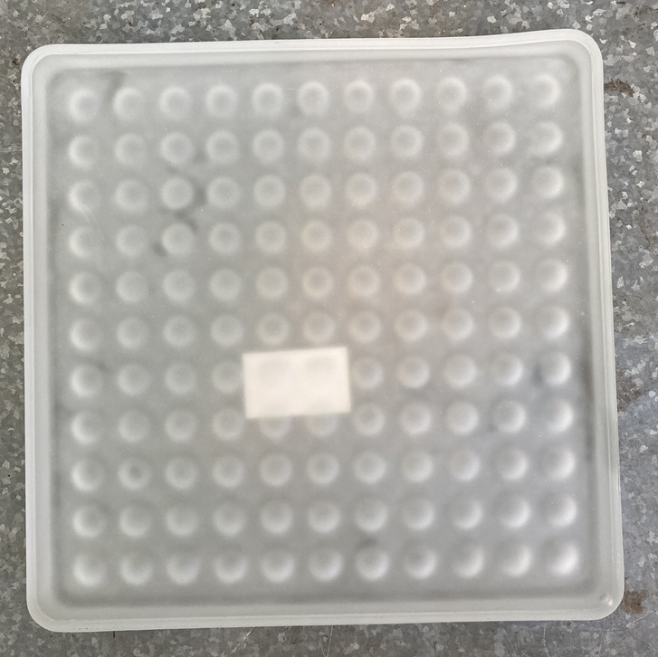 Op de bodem zitten aan de buitenzijde holletjes, dat vanaf boven als nopjes eruitziet.