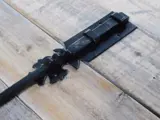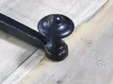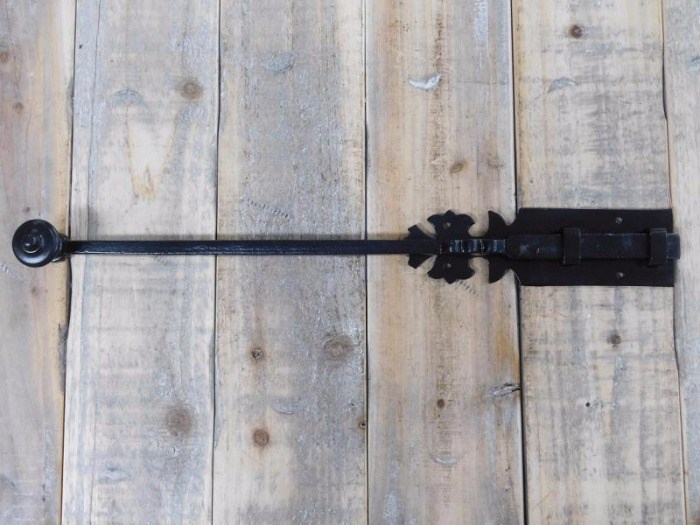 Een grote stevige schuifgrendel voor bijvoorbeeld op een poort. Vervaardigd uit hoogwaardig smeedijzer met een mooi mat zwart oppervlak.