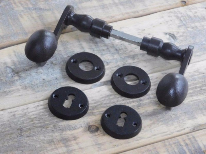 Bestaande uit: 2 klinken + doorn, 2 slotrozetten en 2 klinkrozetten