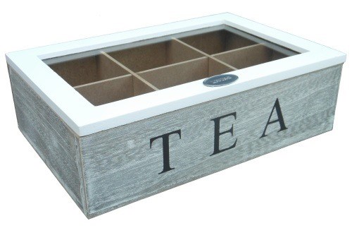 Door het ruitje is goed te zien welke smaken er in de theedoos zitten.