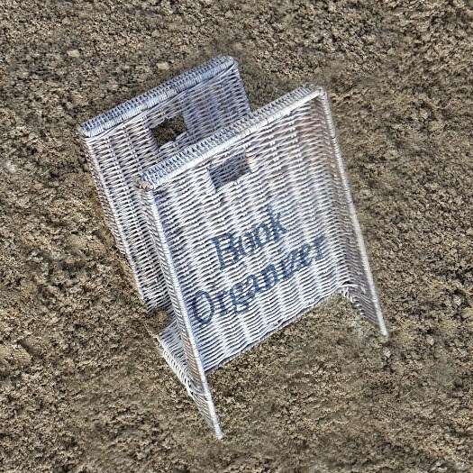 Dit tijdschriftenrek is stevig van model en heeft de opdruk Book Organizer.