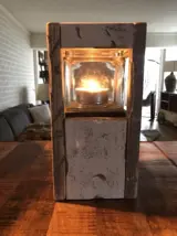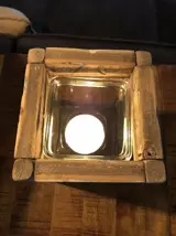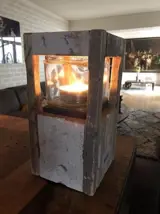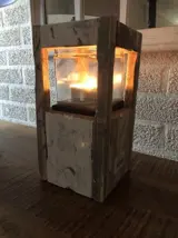 Handgemaakt houten windlicht met een glazen houder voor de waxine lichtjes of kaars.