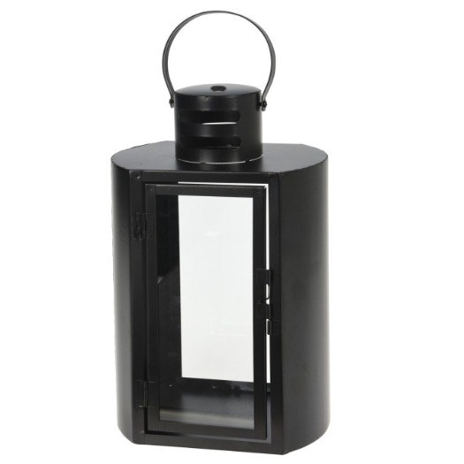 Groot windlicht van zwart metaal, glas en hoge kwaliteit.