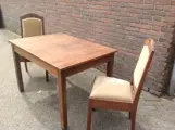 Eetkamerset - tafel + 4 beklede stoelen - 95 jaar oud