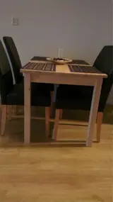 Te koop houten eettafel met vier comfortabele stoelen