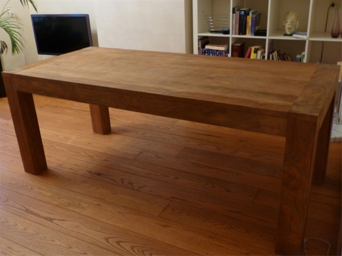 Mooie teak tafel (200 x 90 cm) te koop aangeboden. Twee jaar oud, niet veel gebruikt. Ik moet ervan af ivm samenwonen.
