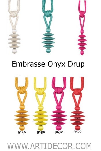 Embrasse Onyx DrupSuper luxe embrasse afgewerkt met prachtig glanzend garen.Produktinformatie:Lengte 90 cm, hoogte schijven 13 cm.