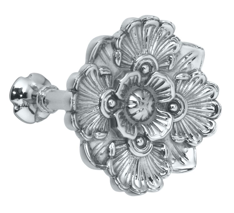 Deze wandrozet kunt u gebruiken als embrasse houder. Als u een embrasse heeft die u om de gordijnen doet kunt u deze vast zetten aan de wandrozet. Bij wat dunnere gordijnen of vitrage kunt u deze wandrozet ook gebruiken als embrasse haak. De wandrozet wordt geleverd in de kleur messing of chroom. U kunt kiezen uit twee verschillende lengte (20 cm en 12 cm) dit is gemeten van de muur tot de buitenkant van de schijf. De schijf (bloem) is 7,5 cm doorsnee. De schroef die in de muur komt is 3,5 cm. De wandrozet wordt geleverd inclusief schroef.