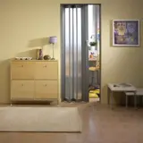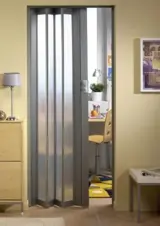 Grosfillex kunststof vouwdeur Lucia aluminium kleur met gumststof glas 84x205 cm bespaart op een praktische en stijlvolle manier ruimte.