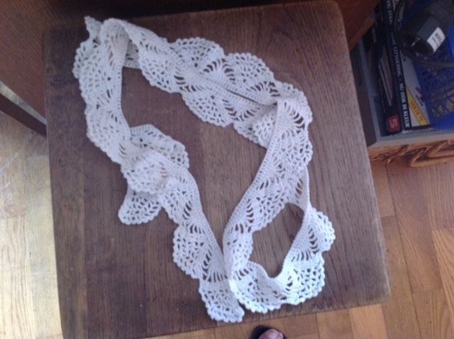 Kastrand of gordijntje - gehaakt - lengte 1.60 - Breedte schulp 5 cm. - - Gehaakt van glanskatoen - doe een bod, vanaf 5,-. Ga ik akkoord met je bod dan krijg je bericht