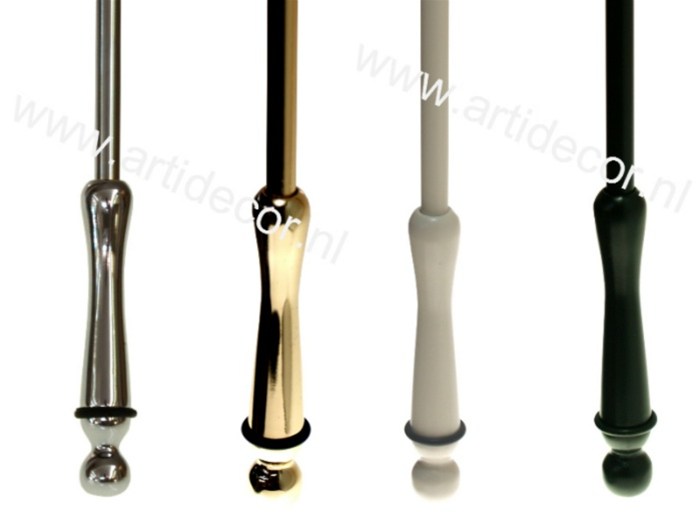 Luxe metalen trekstangen voor het sluiten van gordijnen en/of vitrage.