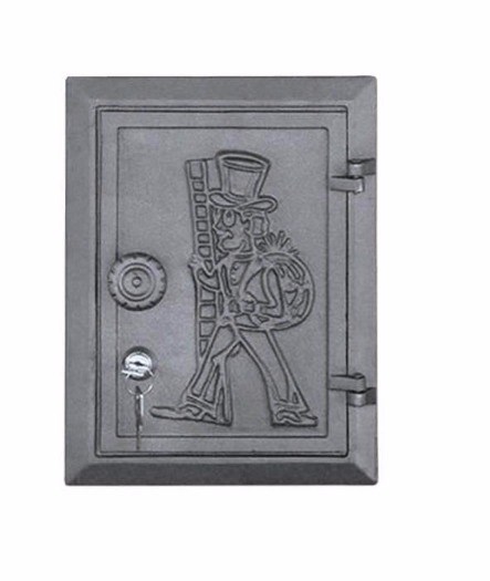 Een bijzonder prachtig vormgegeven inspectie deur voor het reinigen van het rooster. De prachtige antieke patroon met grappige schoorsteenveger op de klep is van historisch fenomeen. Dit werkte onder het oude model gietijzeren deur kunt u uw haard een praktische ornament toe te voegen.