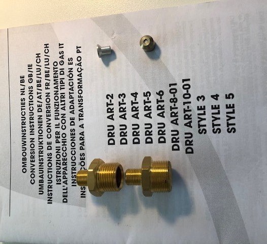Nieuwe DRU ART 2 T of DRU ART 5 T Propaangas ombouwsets 30 Mbar, ( DRU Nr. 26200 of Nr. 26203 ) zolang voorraad strekt.