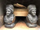 Set gietijzeren haardblokken met lady afbeelding, mooi zwaar