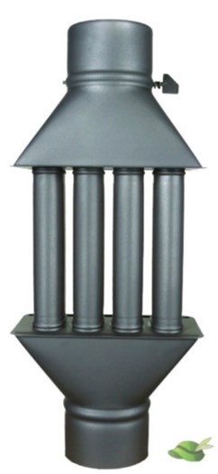 Dit opzetstuk verhoogt de efficiëntie van uw (hout)kachel. U plaatst hem tussen de centrale afvoerpijp. De warmte lucht wordt langs een aantal buizen geleid, waardoor een deel van de restwarmte alsnog wordt afgegeven. Hiermee behaalt u extra rendement uit uw bestaande kachel en vermindert u het benodigde stookmateriaal.